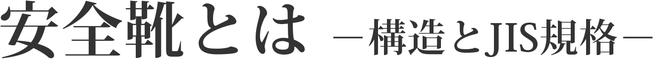 日本産業規格(JIS)が設定した定義は「主として着用者のつま先を先芯によって防護し、滑り止めを備える靴」とされています。 しかし、それだけでなく、耐衝撃性能や耐圧迫性能、表底のはく離抵抗、耐踏抜き性(くぎの貫通時の力に耐えられるものかどうか)、 かかと部の衝撃エネルギー吸収性、表底の滑り止め効果など細かく分けられ、品質・性能について厳しく検査しています。